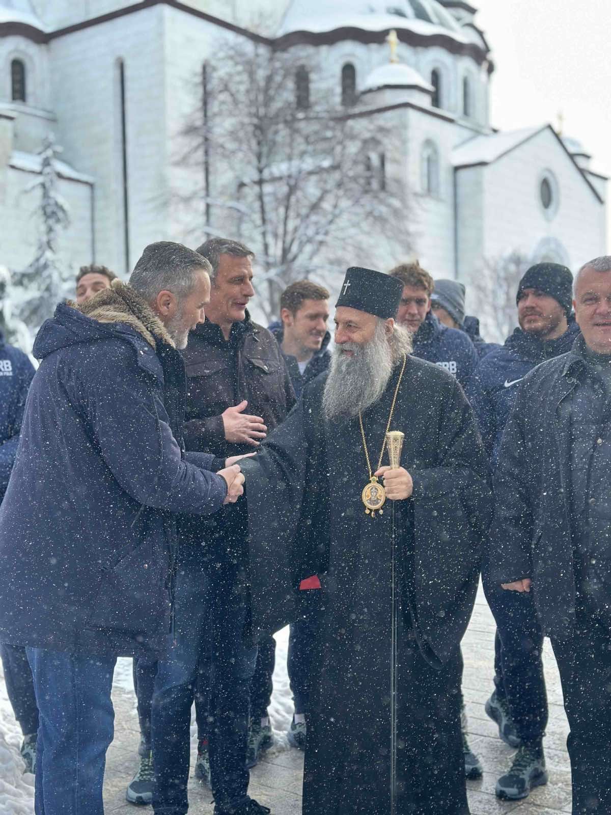 После свете Литургије, Његова Светост Патријарх српски г. Порфирије је срдачно дочекао и угостио ватерполо репрезентацију Србије у Парохијском дому храма Светог Саве. Предстојатељ Српске Цркве је провео време у срдачном разговору са драгим гостима, пожелевши им успеха на предстојећем европском првенству које ће се одржати у Београду.