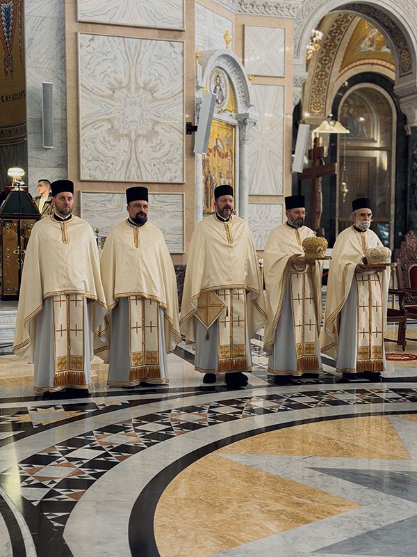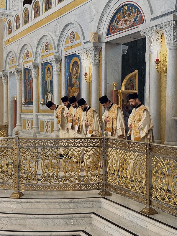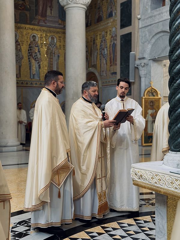 Том приликом, Светејшем Патријарху су саслуживали: Преосвећени викарни Епископ липљански г. Доситеј; протојереји-ставрофори Радивој Панић и Димитрије Касапис; протојереј Ђорђе Стојисављевић, шеф Кабинета Патријарха српског; протојереји Драган Шовљански и Бранислав Кличковић; јереји Богољуб Остојић, Далибор Стојадиновић, Мирослав Васић и Немања Калем; протођакони Драган Радић, Радомир Врућинић и Младен Ковачевић; и ђакони Василије Перић, Никола Рашковић и Ненад Драговић.