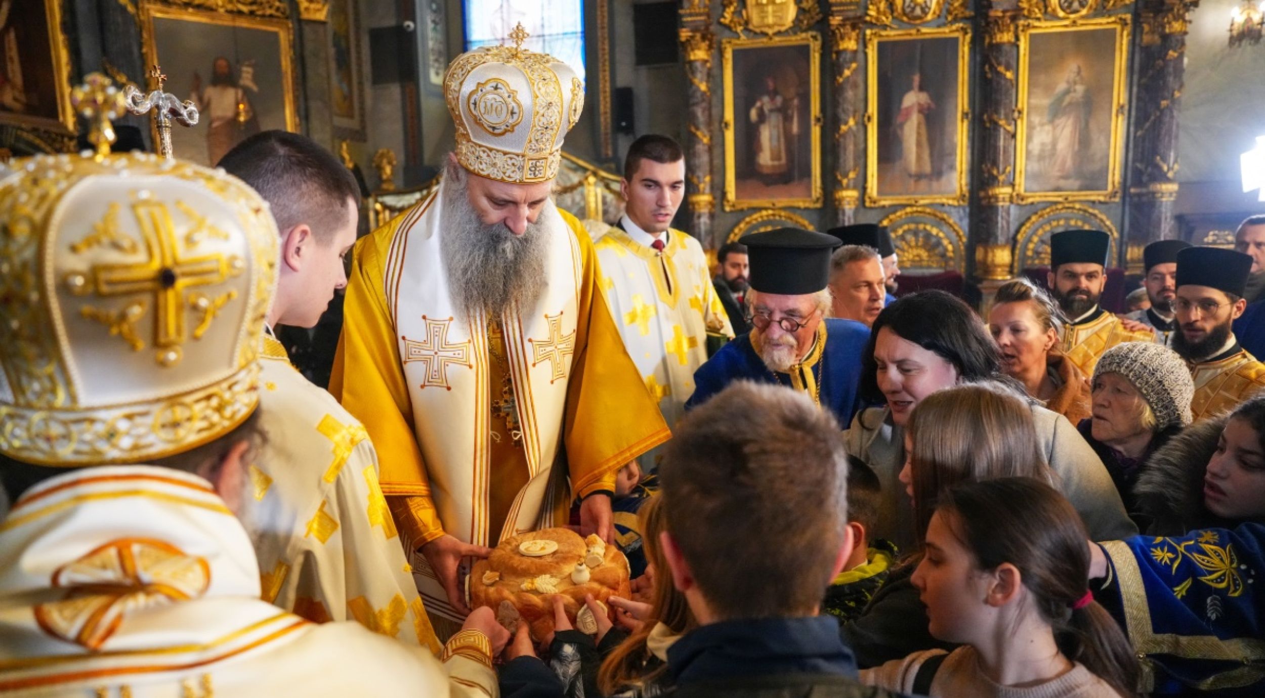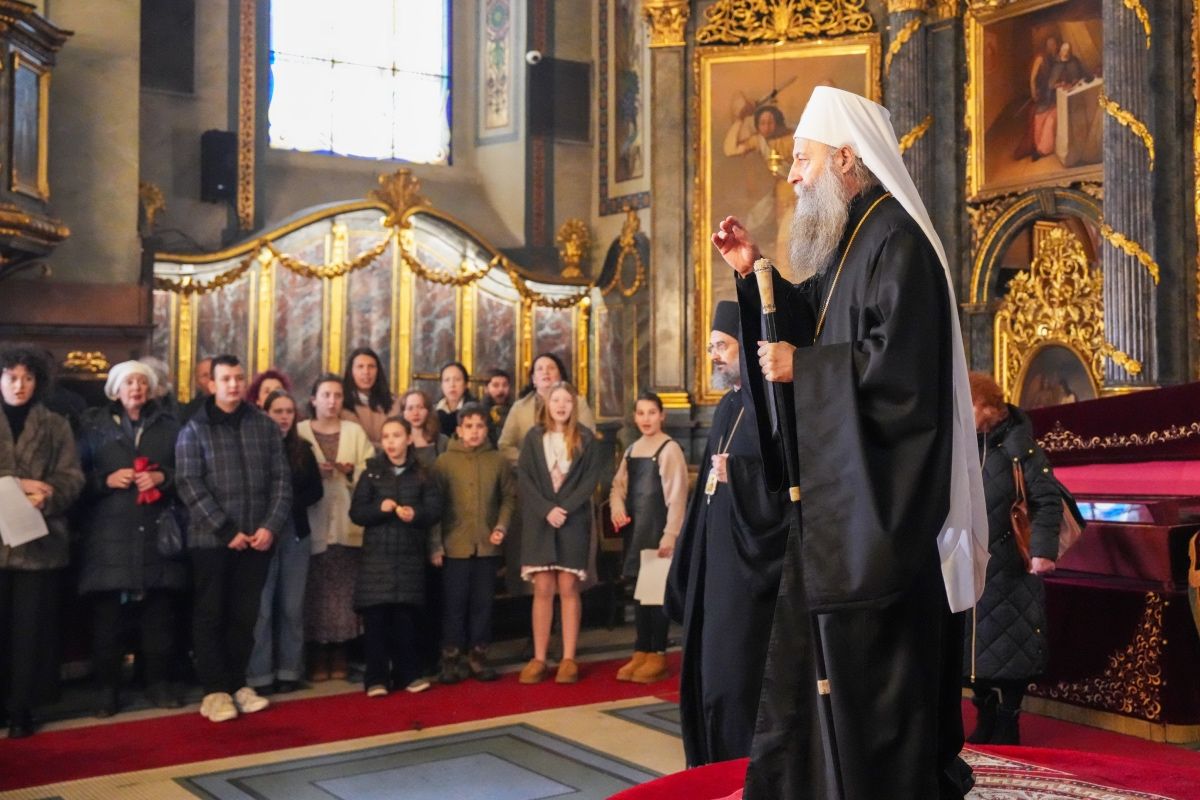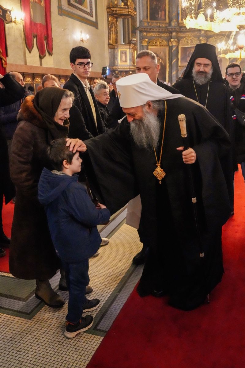 Његова Светост Патријарх српски г. Порфирије је служио 14. јануара 2026. године, на празник Обрезања Господњег и у дану када се Црква молитвено сећа Светог Василија Великог, свету Литургију у београдској Саборној цркви.