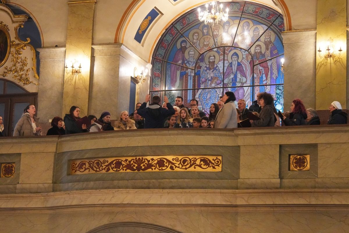 – На здравље и на спасење молитва и свето Причешће. Нека је срећна и благословена Нова година која је пред нама и нека нам Бог подари свима здравља и душе и тела, и унутрашње и спољашње здравље, а то значи да нам Господ да снаге да живимо у врлини, да се трудимо да испуњавамо Његов закон и Његове заповести баш онако као што је сам Син Божји, поставши један од нас, испунио све што закон предвиђа. Међутим, не само да се на Њему испунио и реализовао закон, тј. све оно што су пророци говорили, него је Он испунио и све оно што закон предвиђа, па и само обрезање тела. Исто тако је показао да спољашње обрезање, тј. спољашњи изглед и спољашње испуњавање закона, још увек ништа не значи, него да треба изнутра себе обрезати, срце своје обрезати, а то значи у смирењу и љубави вером испуњавати оно што предвиђа Реч Божја. Нека Бог да да и ми изнутра духовно држимо Реч Божју као основ, садржај и циљ свог живота, као правило свог живота. Нека је срећна и благословена слава Првом београдском певачком друштву, да и њима Господ да све оно што свако од нас жели себи и све оно што је Господ припремио онима који га љубе. Живели!