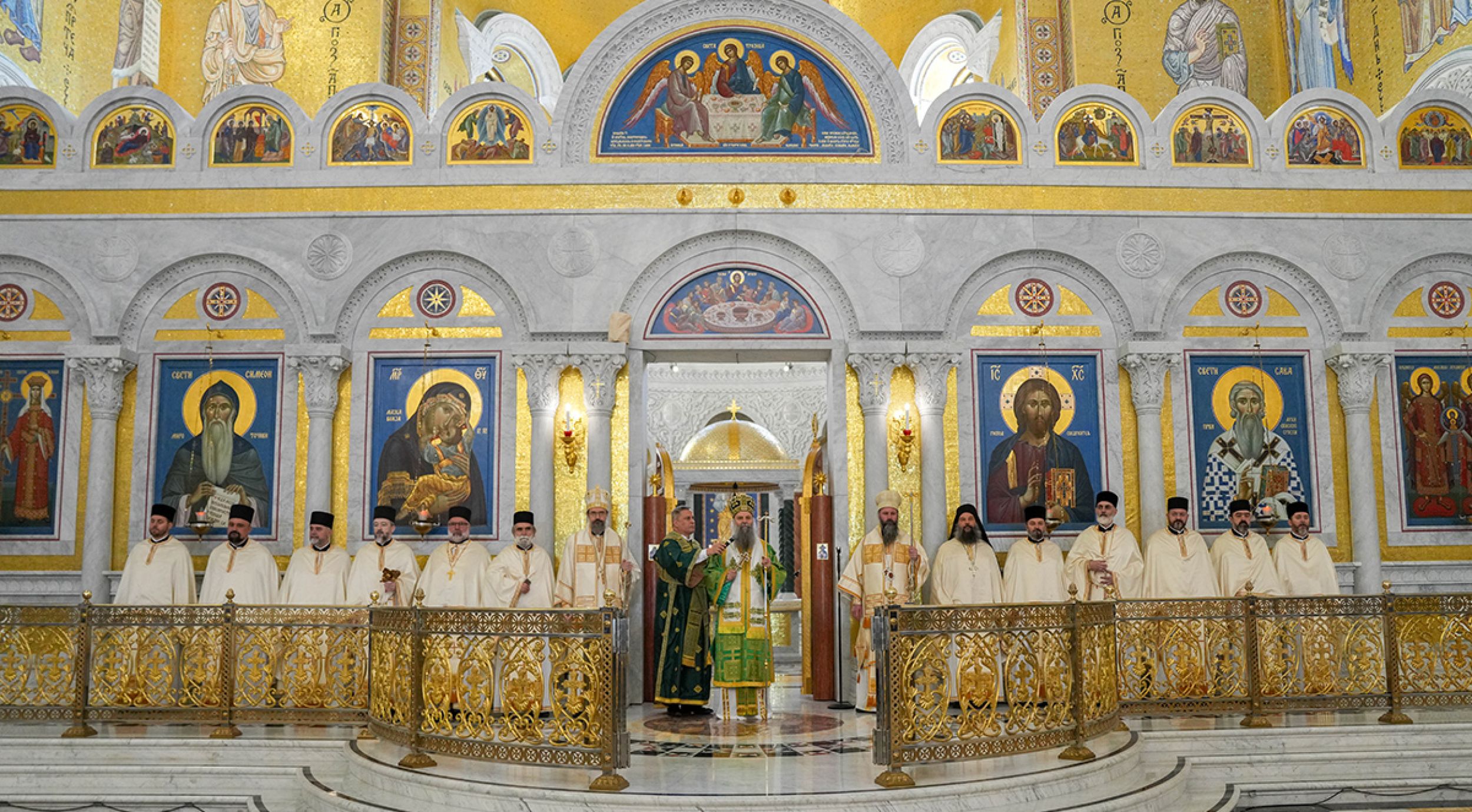 Његовој Светости Патријарху су саслуживали: преосвећена господа викарни епископи новобрдски Иларион и моравички Тихон; архимандрит Андреј, игуман манастира Црна Река; протојереј-ставрофор Радивоје Панић; протојереј Ђорђе Стојисављевић, шеф Кабинета Патријарха српског; протојереји-ставрофори Александар Илић и Димитрије Касапис; протојереји Предраг Продић, Драган Шовљански, Иван Штрбачки и Бранислав Кличковић; јереји Далибор Стојадиновић, Мирослав Васић и Немања Калем; протођакони Драган Радић, Радомир Врућинић и Младен Ковачевић; и ђакон Василије Перић.