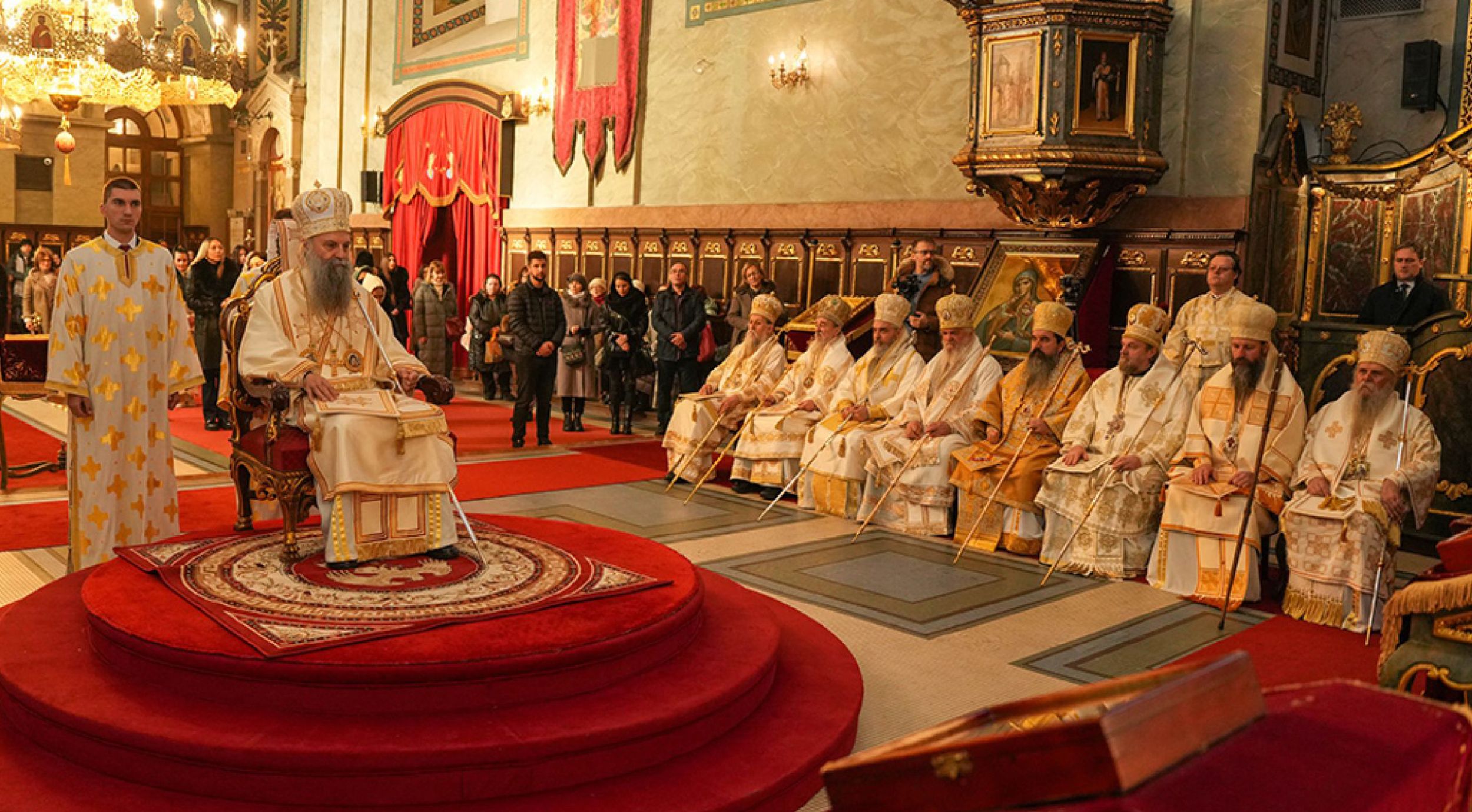 Прослави крсне славе Његове Светости Патријарха српског г. Порфирија, поред отачаствених архијереја и принца наследника Филипа и принцезе Данице Карађорђевић, присуствовали су и: др Ђуро Мацут, председник Владе Републике Србије; г. Милош Вучевић, изасланик и саветник Председника Републике Србије; г. Ивица Дачић, потпредседник Владе и министар унутрашњих послова; г. Никола Селаковић, министар културе; гђа Милица Ђурђевић Стаменковски, министар за рад, за запошљавање, борачка и социјална питања; др Владимир Рогановић, директор Управе за сарадњу са црквама и верским заједницама; г. Петар Петковић, директор Канцеларије за Косово и Метохију; Надбискуп београдски Ладислав кардинал Немет; г. Страхиња Секулић, директор Агенције за реституцију; г. Душан Бајатовић, директор Ј.П. Србијагас; г. Александар Боцан Харченко, амбасадор Руске Федерације; др Радисав Шћепановић, председник Хиландарског лекарског друштва; архимандрит Данило, директор Патријаршијске управне канцеларије; архимандрит Серафим, игуман манастира Рајиновца; протојереји-ставрофори Владимир Вукашиновић, Бранко Топаловић и Драган Станишић; протојереј Ђорђе Стојисављевић, шеф Кабинета Патријарха српског; протопрезвитер Борис Савић; протојереј Панајотис Карастасиос; и многобројни представници културног и јавног живота престонице.