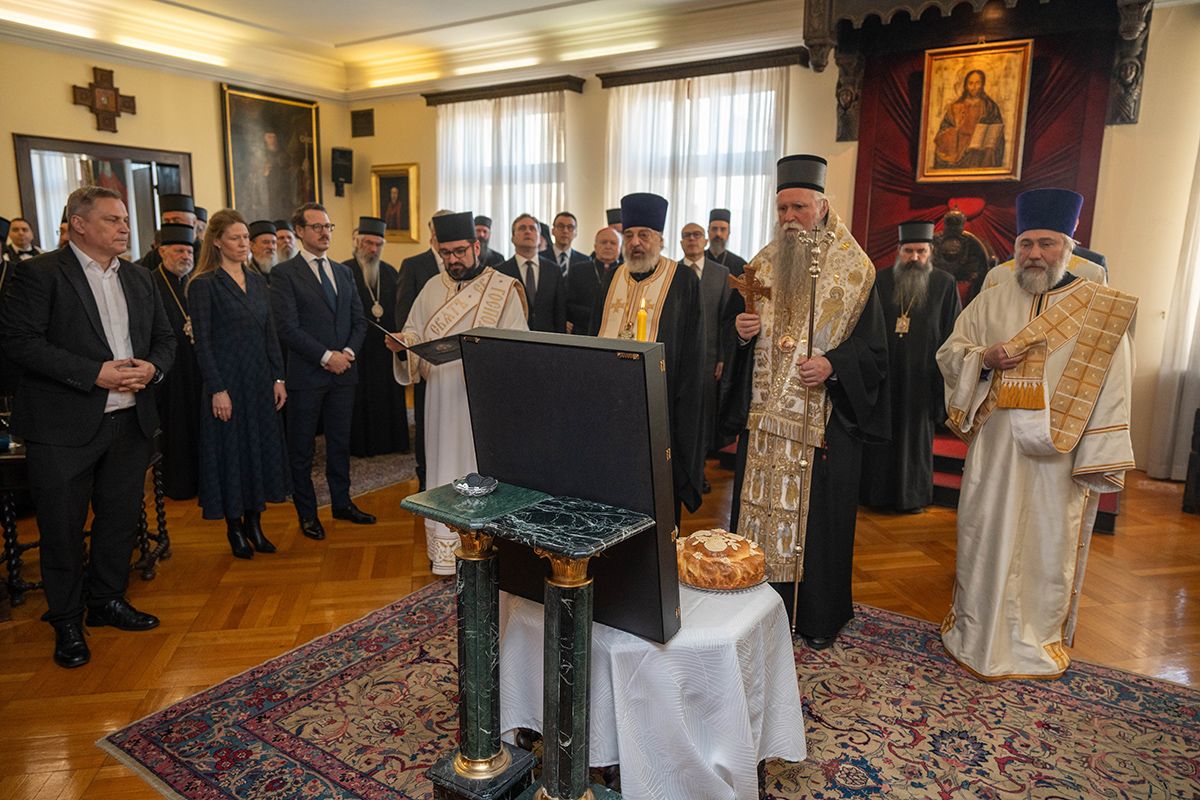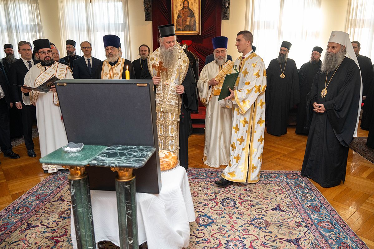Поводом Сабора Светог Јована Крститеља - Јовандана, своје крсне славе, Патријарх г. Порфирије је угостио високе званице у Патријаршијском двору у Београду, где је свечани чин освећења славских дарова обавио Митрополит црногорско-приморски г. Јоаникије, који је том приликом Патријарху српском упутио речи срдачне честитке: