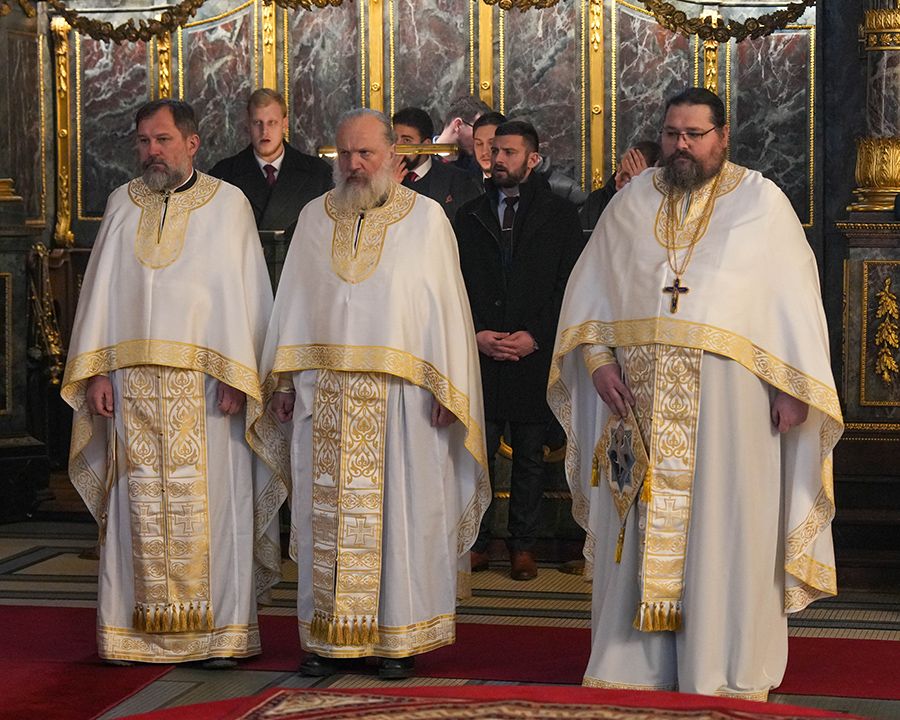 Његовој Светости Патријарху су, такође, саслуживали и: архимандрит Нектарије, главни секретар Светог Архијерејског Синода; протојереј Виталије Тарасјев, старешина Подворја Руске Православне Цркве у Београду; јеромонах Севастијан, игуман манастира Крке; јеромонах Стефан, игуман манастира Светог архиђакона Стефана у Сланцима; протонамесник Горан Мишановић; протођакон Вадим Навински из Украјинске Православне Цркве Московске Патријаршије; протођакони Драган Радић и Радомир Врућинић; и ђакон Василије Перић.