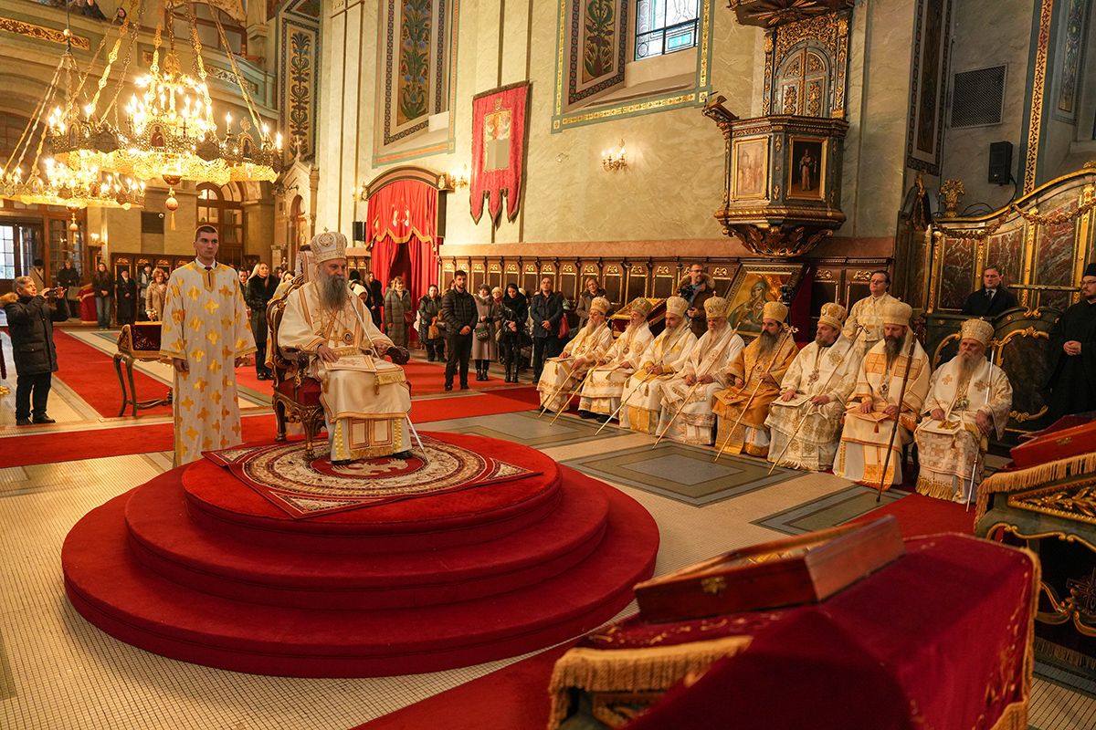 На крају празничног богослужења, речи благослова и очинске захвалности многобројном верном народу, архијерејима и свештенству упутио је Његова Светост Патријарх г. Порфирије: