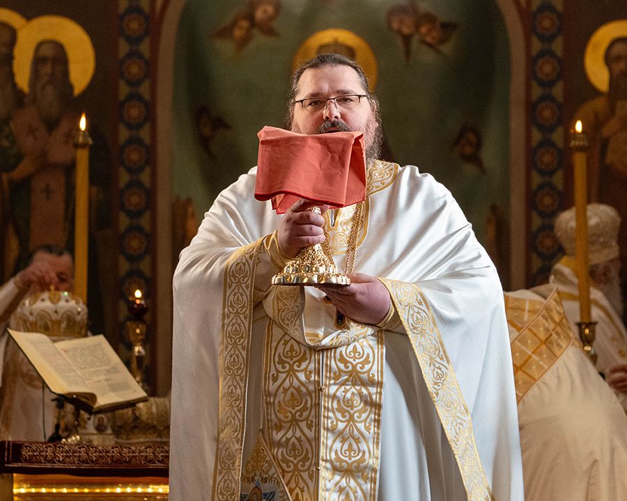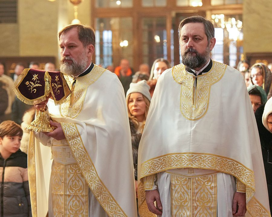Током свете Литургије, на малом входу, Његова Светост Патријарх српски г. Порфирије је одликовао јереја Србољуба Убипариповића, декана Православног богословског факултета у Београду, и јереја Горана Мишановића чином протојереја.