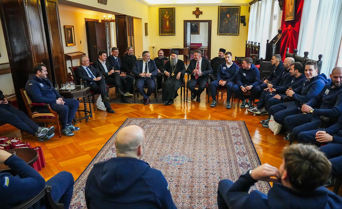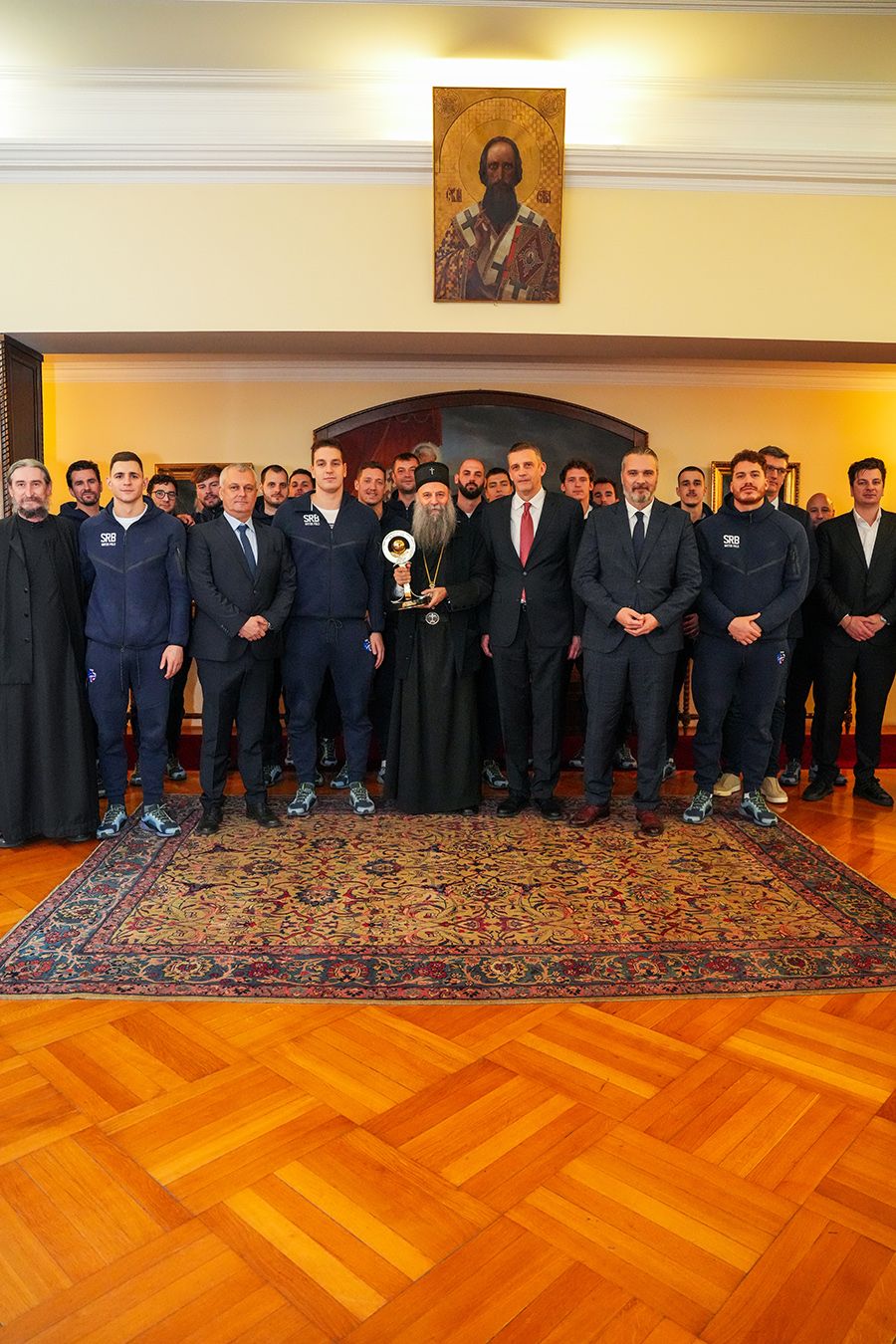 Његова Светост Патријарх српски г. Порфирије је угостио 26. јануара 2026. године у Патријаршијском довру у Београду ватерполисте Србије, освајаче златне медаље на Европском првенству у Београду.