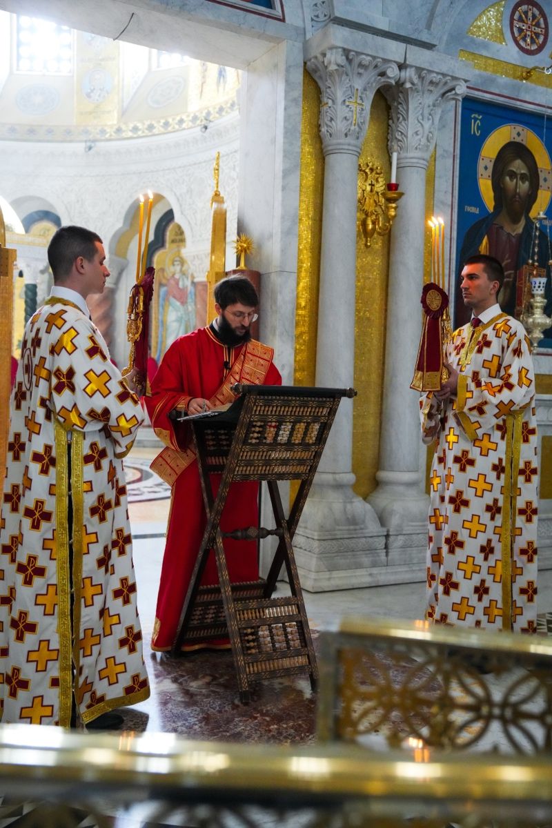 Предстојатељу Српске Православне Цркве Патријарху Порфирију су саслуживали: протојереји-ставрофори Радивоје Панић и Димитрије Касапис; протојереј Ђорђе Стојисављевић, шеф Кабинета Патријарха српског; протојереји Ненад Јовановић, Драган Шовљански и Бранислав Кличковић; јереји Далибор Стојадиновић и Мирослав Васић; протођакони Драган Радић, Радомир Врућинић и Младен Ковачевић; ђакони Василије Перић и Владимир Јовић.