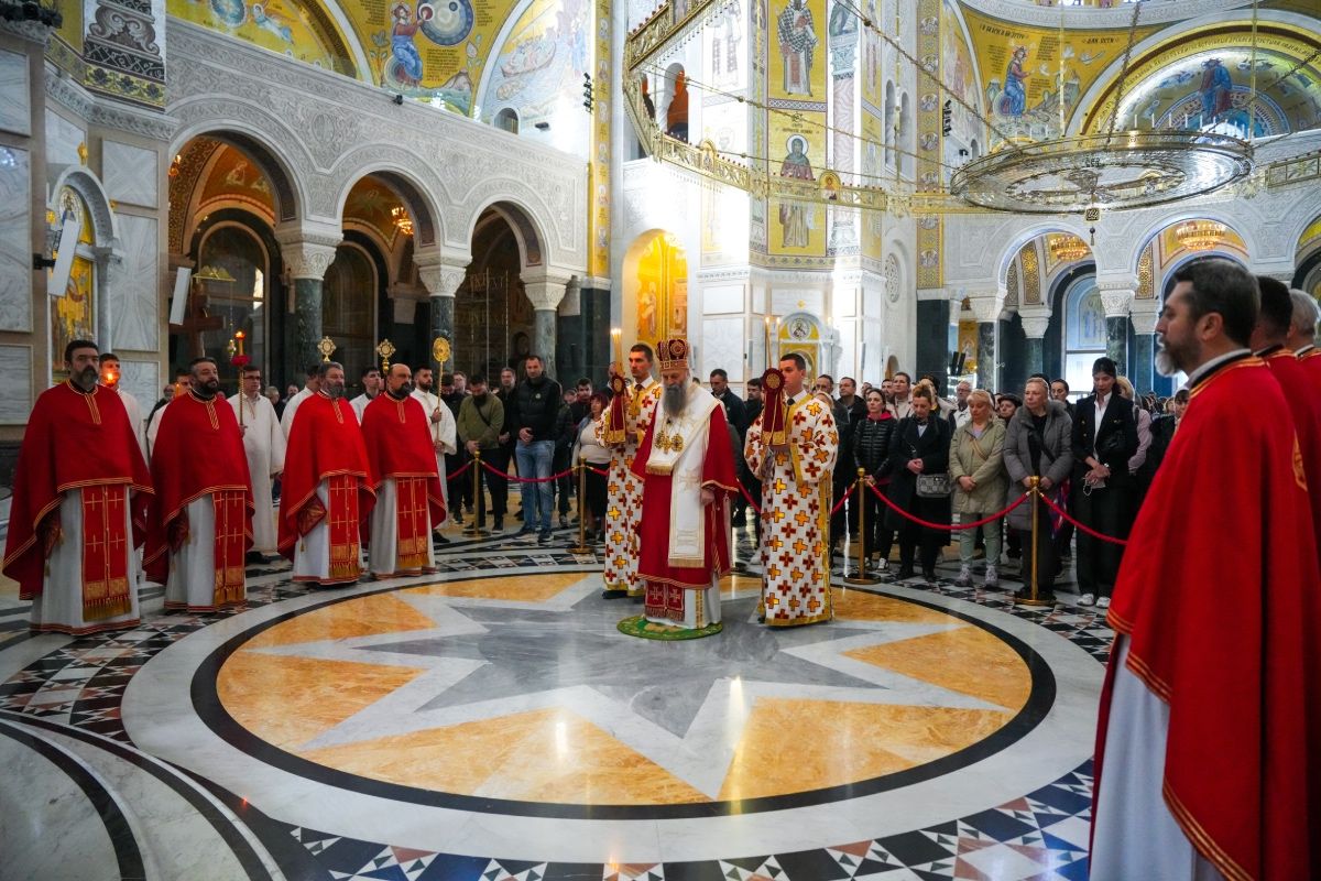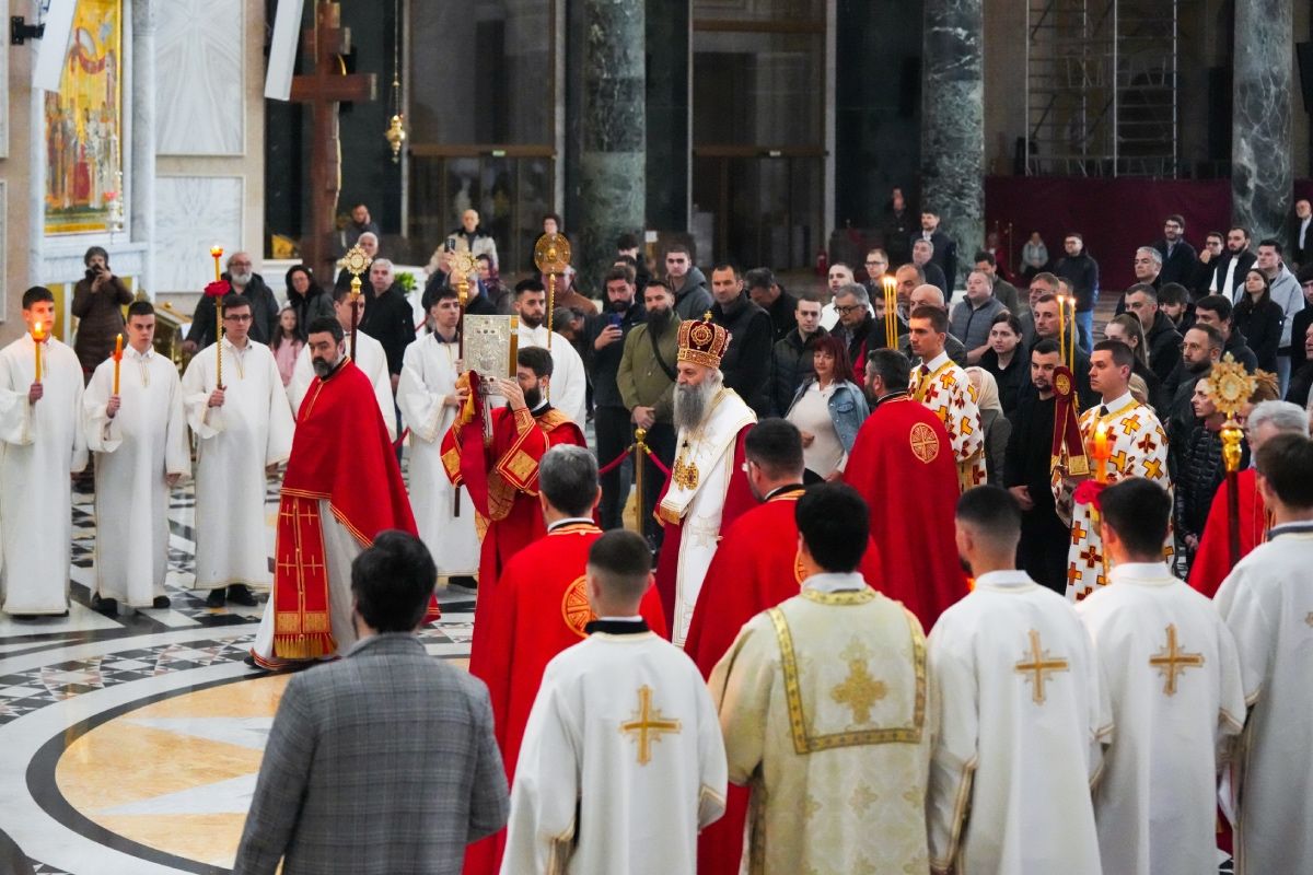 Његова Светост Патријарх српски г. Порфирије је служио на Велики четвртак, 9. априла 2026. године, свету Литургију у храму Светог Саве на Врачару.