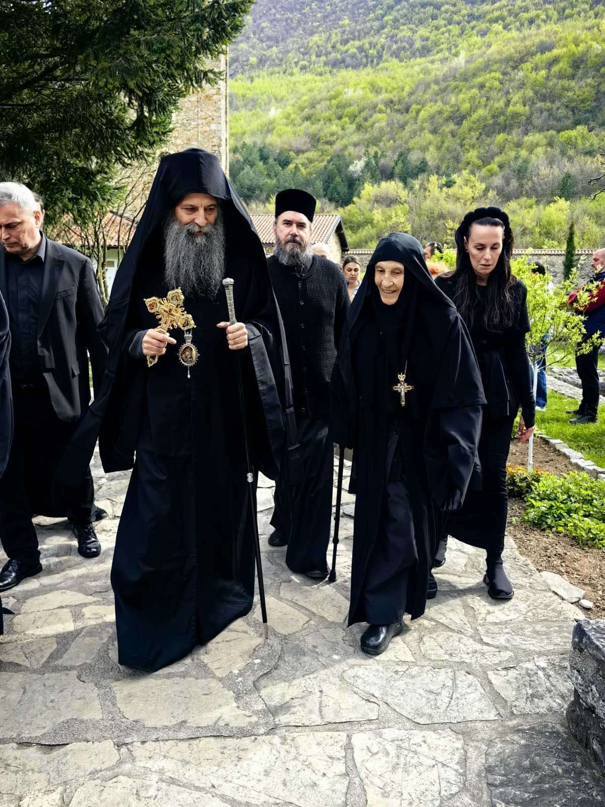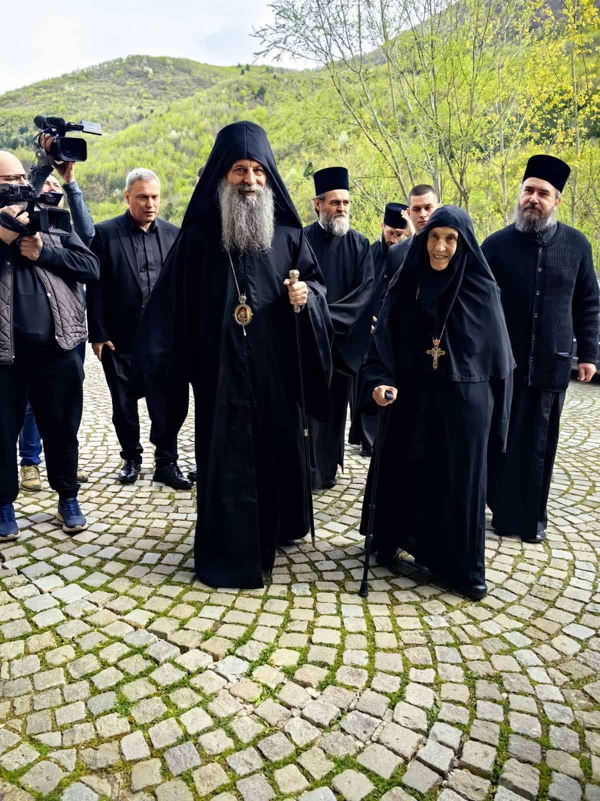 Свечано оглашавање звона древне светиње одјекивало је Пећком котлином објављујући долазак Патријарха српског г. Порфирија, кога је дочекала високопреподобна игуманија пећка Харитина са сестринством, свештенством и благочестивим народом. Предстиојатељ Српске Православне Цркве се поклонио чудотворној икони Богородице Пећке и светим моштима својих претходника архиепископа и патријараха српских.