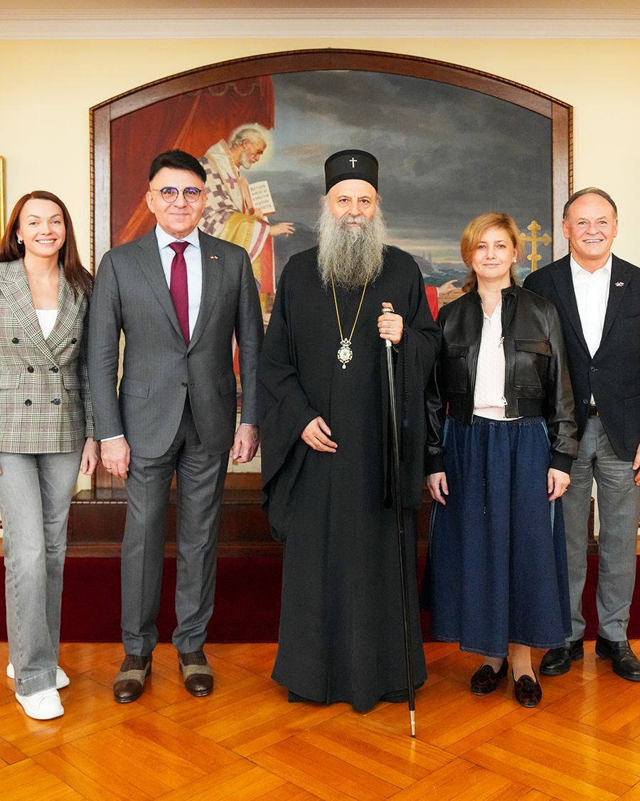 Гост Његове Светости Патријарха српског г. Порфирија 22. априла 2026. године у Патријаршијском двору у Београду био је и г. Александар Жаров, генерални директор Гаспром медија холдинга.
